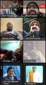 प्रदेश स्तरीय ज़ूम मीटिंग में प्रमुख रूप से मो. युनुस (राष्ट्रीय कार्यकारी अधिकारी – CEO), इंजीनियर शफकत अली (प्रदेश प्रभारी), अबू सईद अंसारी (प्रदेश अध्यक्ष), सीमा परवीन (महिला प्रदेश अध्यक्ष), मौलाना अब्दुल रकीब अंसारी (राष्ट्रीय प्रवक्ता, उलेमा बोर्ड सह प्रदेश उपाध्यक्ष), शमीम अख्तर (कार्यकारी अध्यक्ष), इसराइल अंसारी (प्रदेश प्रधान महासचिव), जब्बार अंसारी (प्रदेश मुख्य सलाहकार), एहसान अंसारी व ए.के. सुलतान (प्रदेश महासचिव), मो. सेराज अंसारी (संथाल परगना प्रमंडल संगठन मंत्री), मौलाना फिरोज शमीम (उत्तरी छोटानागपुर प्रमंडल प्रभारी, उलेमा बोर्ड), जावेद इकबाल (जिला अध्यक्ष, पूर्वी सिंहभूम), फरीद अंसारी सहित अनेक वरिष्ठ पदाधिकारी एवं कार्यकर्ता उपस्थित रहे।