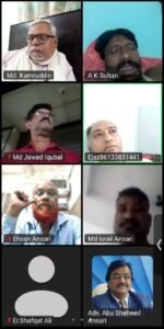 इस प्रदेश अस्तरीय ज़ूम मीटिंग में रास्ट्रीय महासचिव Md. कमरुद्दीन, प्रदेश प्रभारी इंजिनियर शफकत अली, प्रदेश अध्यक्ष अबू शहीद अंसारी प्रदेश प्रधान महासचिव इसराइल अंसारी, प्रदेश महासचिव एहसान, प्रदेश महासचिव A. K. सुलतान, जिला अध्यक्ष पूर्वी सिंघ्भुम जावेद इकबाल एजाज़ अली आदि शामिल हुवे।